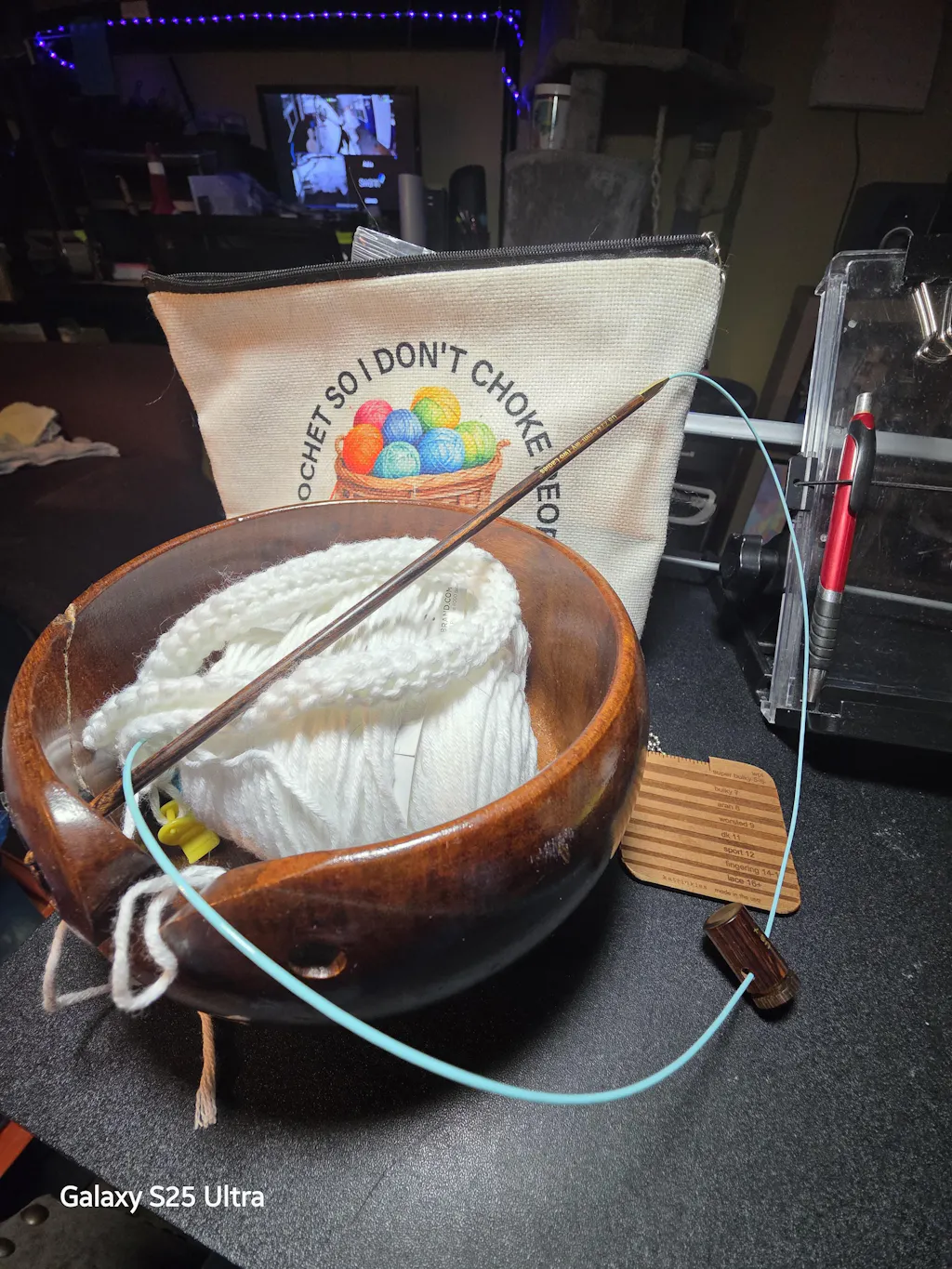 I had not used adjustable needles until now. What an unexpected bonus. The end product is thicker ( more bulk). With fixed needles I’d cast on 60 stitches. With adjustable I can reduce that to 45. I like the thicker feeling to my afghans. My only concern is the filament. I’d like to straightened the line but don’t know how to.
